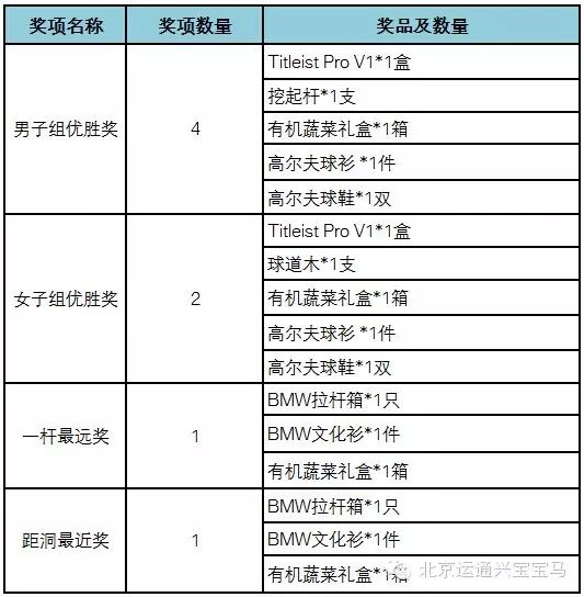 運(yùn)通集團(tuán)BMW北京分站賽,將設(shè)立男子優(yōu)勝獎(jiǎng)4名、女子優(yōu)勝獎(jiǎng)2名;晉級(jí)者將代表運(yùn)通集團(tuán)BMW北京運(yùn)通興寶、運(yùn)通嘉寶參賽7月在大連舉辦的區(qū)域賽,贏取全國(guó)總決賽資格!同時(shí)此次比賽總桿前20名將直接晉級(jí)運(yùn)通集團(tuán)“運(yùn)通杯”決賽,暢享高爾夫帶給您的無(wú)窮魅力。